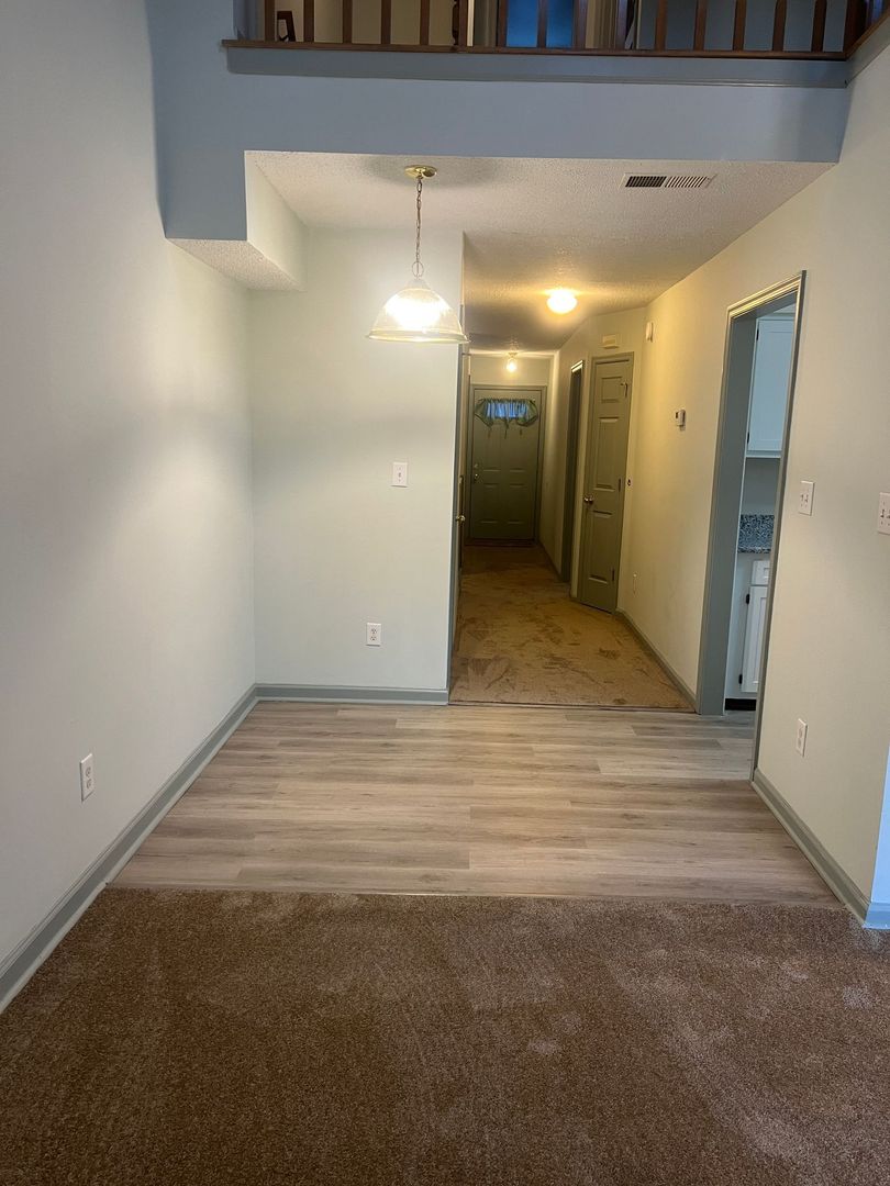 Charming 2-bedroom, 2-bath townhouse in the Hampton Woods neighborhood. This 1,369 sq ft home offers an airy open floor plan with a bright living room, kitchen, dining area and breakfast bar. There is a first floor primary bedroom with on-suite and large walk-in closet. Upstairs there is a second bedroom and hall bathroom, in addition to a spacious loft area overlooking the downstairs. This home has a fenced in backyard with patio area and storage closet. Centrally located with easy access to I64, various restaurants, shopping and entertainment options.